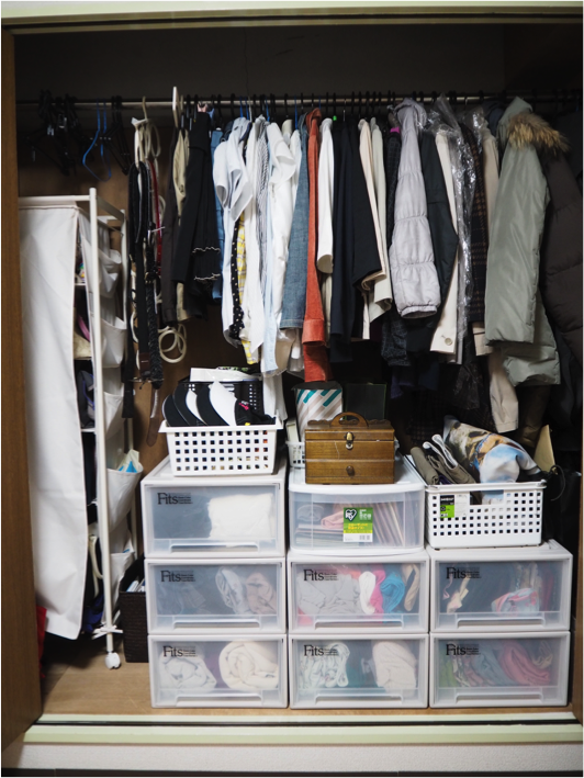 クローゼットはデッドスペースがそこあそこにあったもの、収納グッズを使い、今まで入らなかったものも収納できるようになりました。